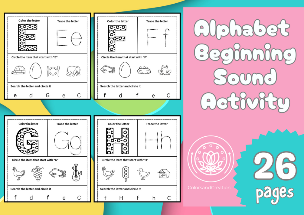 You'll get a soft copy of 28 pages of Alphabet Beginning Sound with Activity