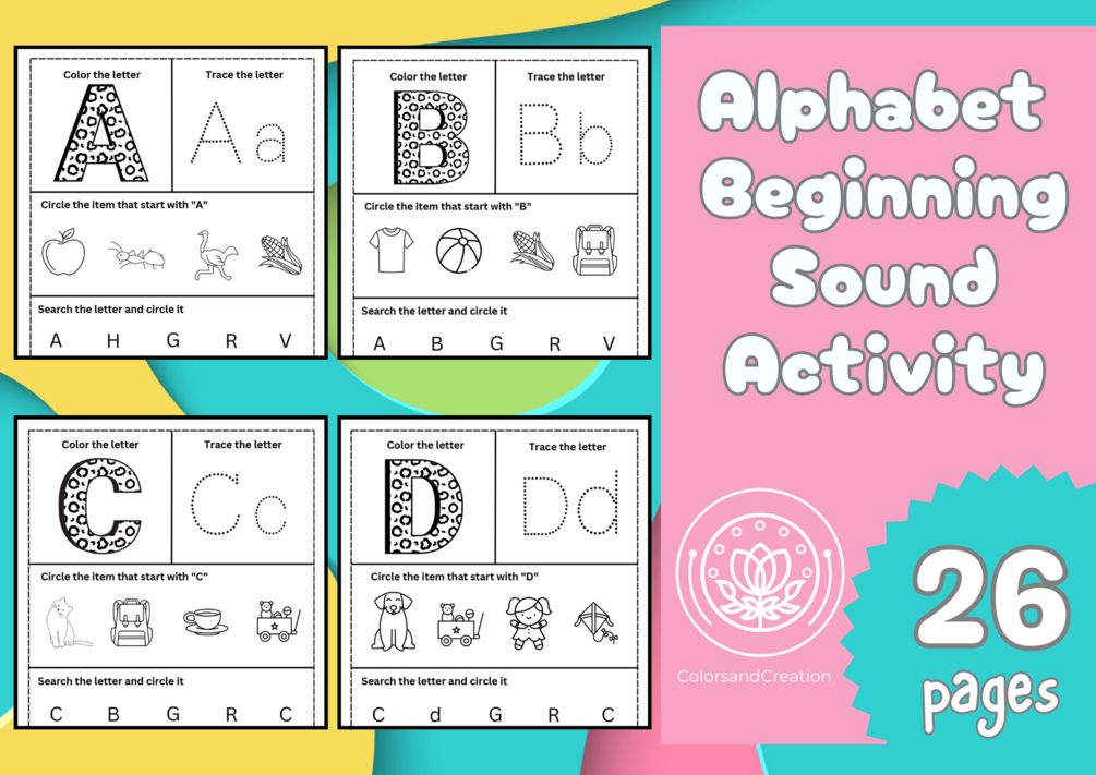 You'll get a soft copy of 28 pages of Alphabet Beginning Sound with Activity
