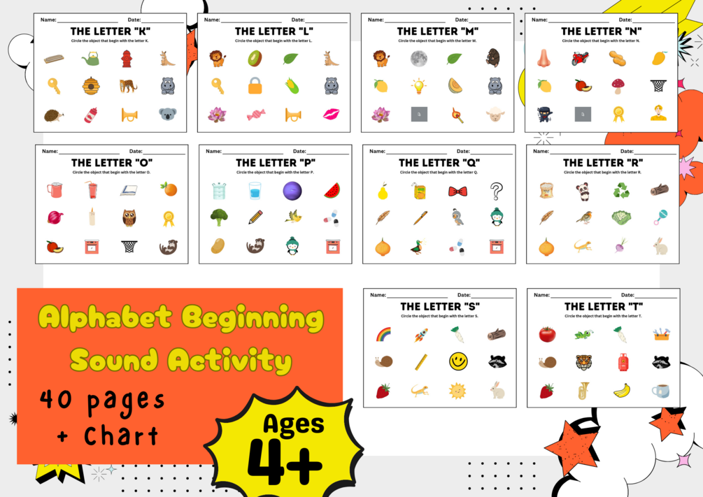 You'll get a soft copy of 40 pages of Alphabet Beginning Sound with Activity