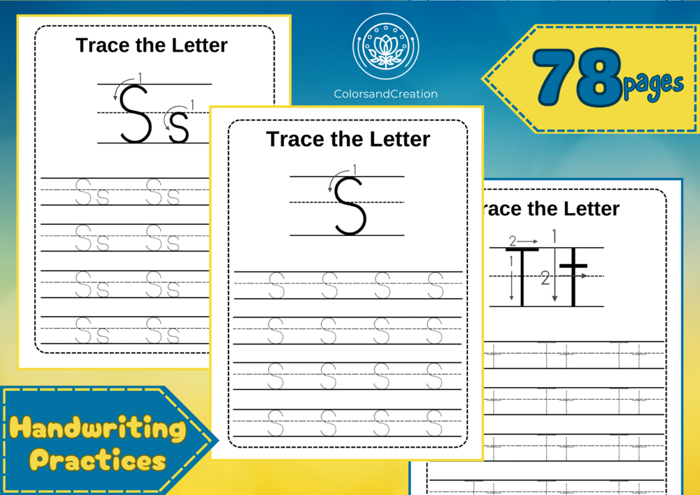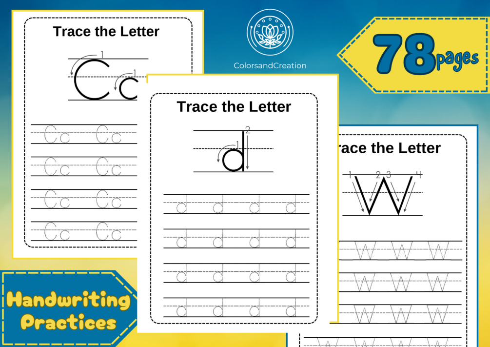 Printable Alphabet Tracing with guides for over 78 pages. Each letter is accompanied by a dotted guide to show children where to start and how to continue tracing.