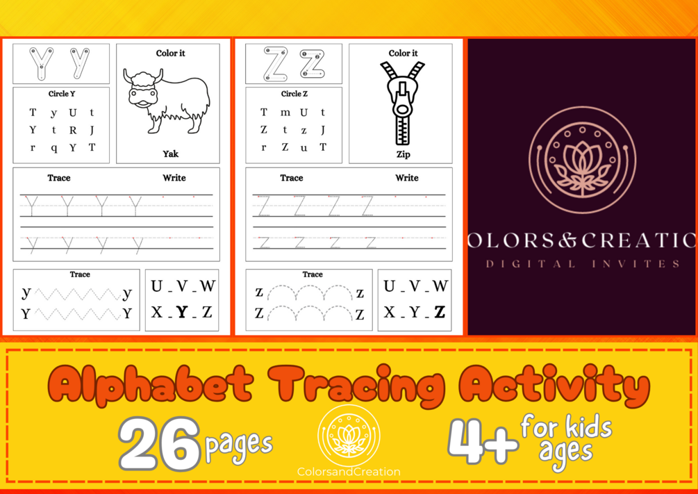 You'll get a soft copy of Black and White Alphabet Tracing A-Z (set B) with 26 pages