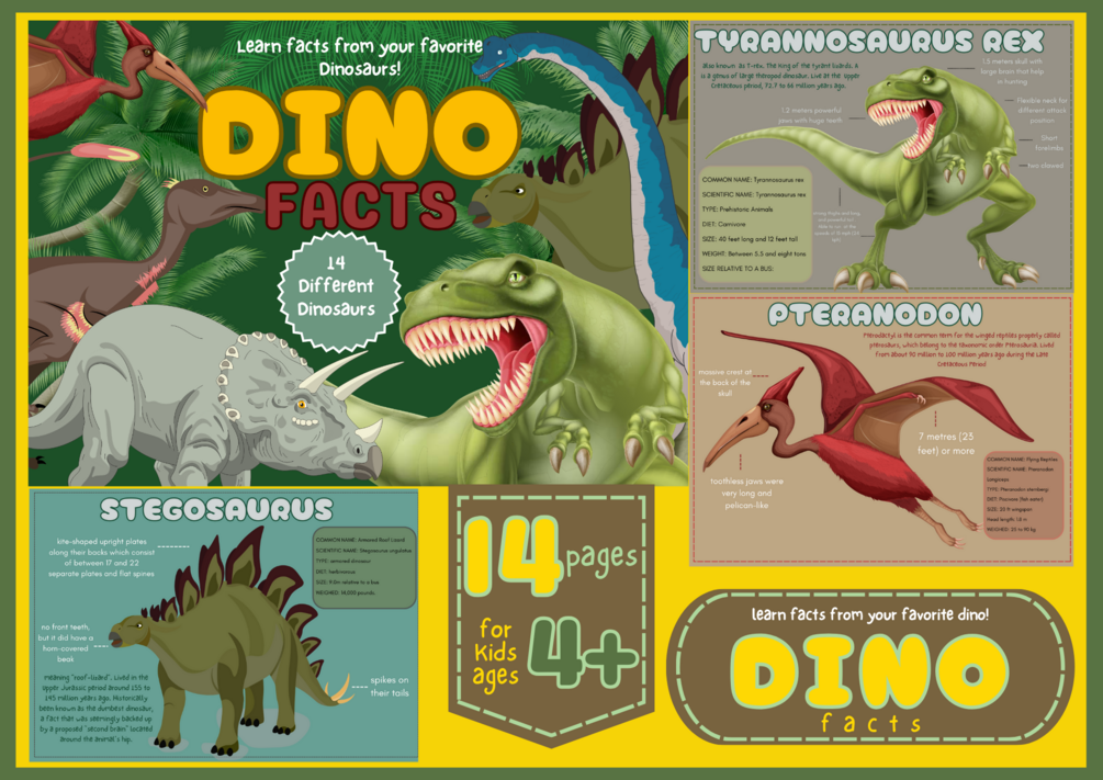 Introducing the Dino Facts Colorful Picture – the perfect learning resource for young dinosaur enthusiasts! This printable resource is packed full of fascinating dinosaur facts, accompanied by vibrant and eye-catching illustrations that are sure to captivate kids' attention. Whether it's the towering T-Rex or the speedy Velociraptor, children will delight in learning about these prehistoric creatures while enjoying the colorful images. With this resource, kids can easily expand their knowledge of dinosaurs in a fun and engaging way. Perfect for homeschooling, classrooms, or just for a fun learning activity at home, the Dino Facts Colorful Picture is a must-have for any young dinosaur lover. So, get ready to dive into the world of dinosaurs with this educational and entertaining resource!