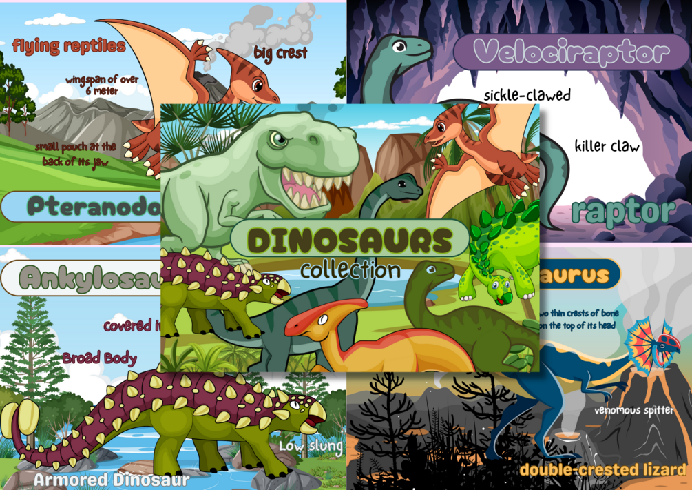 Introduce your young learners to the fascinating world of dinosaurs with our printable Dinosaurs Collection! This fun and educational set includes a variety of different kinds of dinosaurs, from the mighty T-Rex to the herbivorous Triceratops. Each printable features a high-quality, detailed illustration of a different species of dinosaur, perfect for sparking young imaginations and fostering a love of learning about prehistoric creatures. Whether used for coloring, crafting, or simply displaying, this Dinosaurs Collection is sure to inspire curiosity and excitement in kids of all ages. Bring the Jurassic era to life in your home or classroom with this engaging and informative resource.