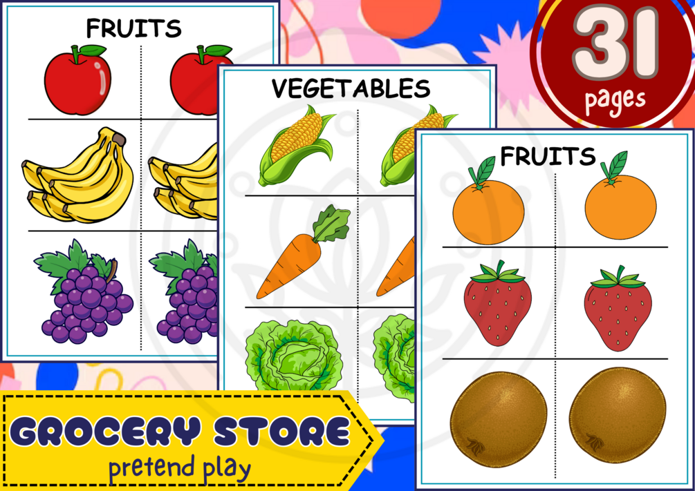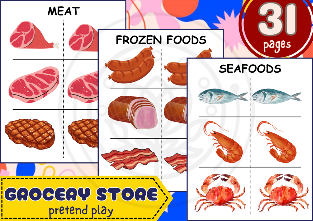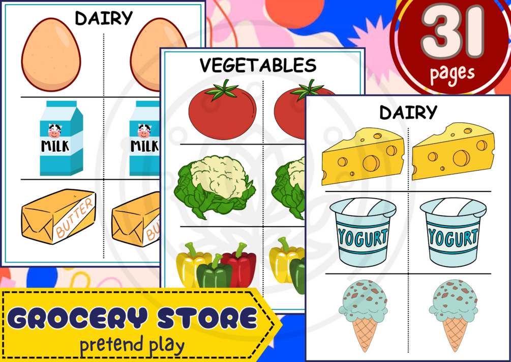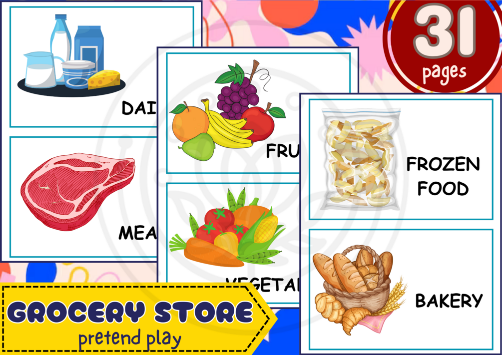 You'll get a soft copy of Grocery Store Pretend Play