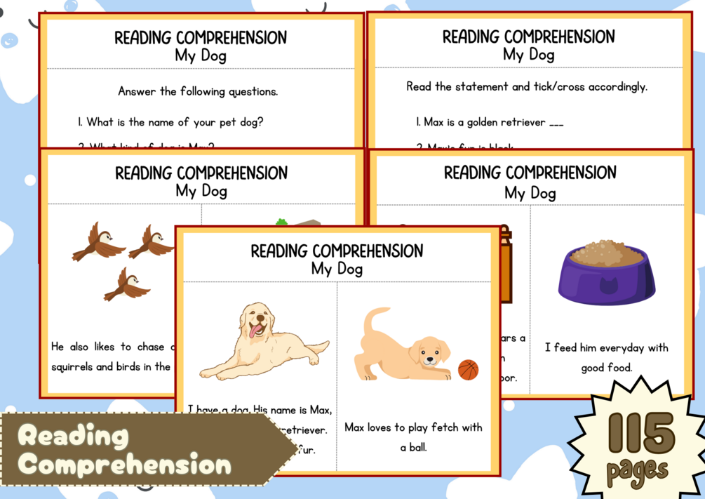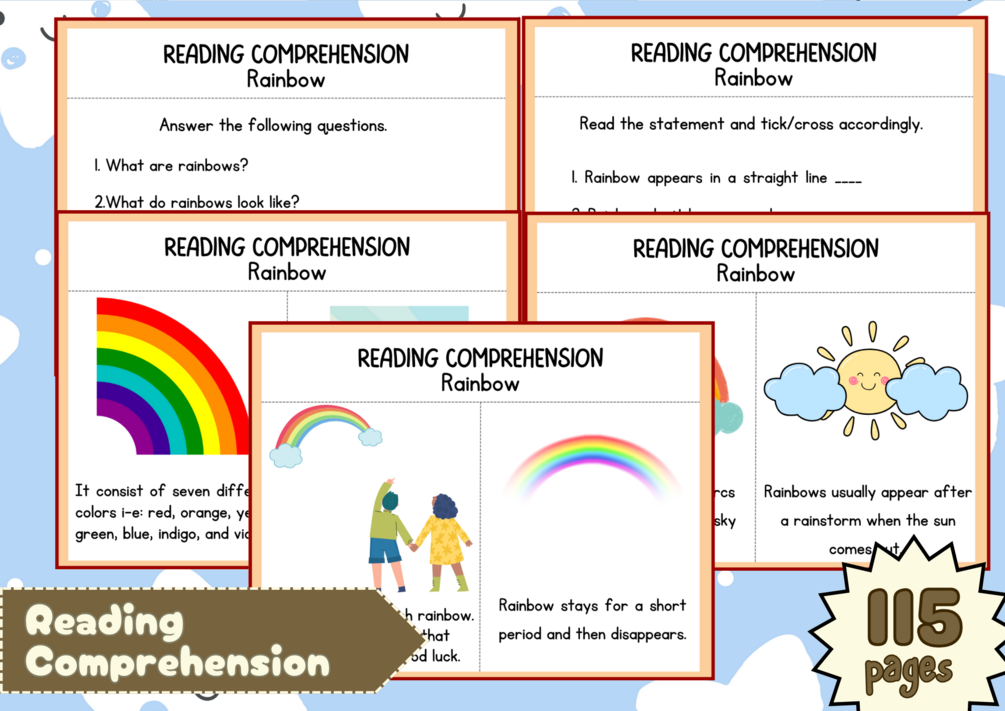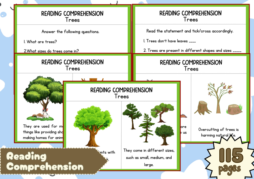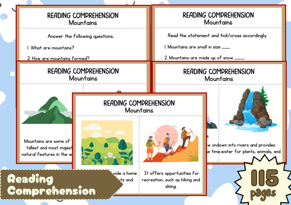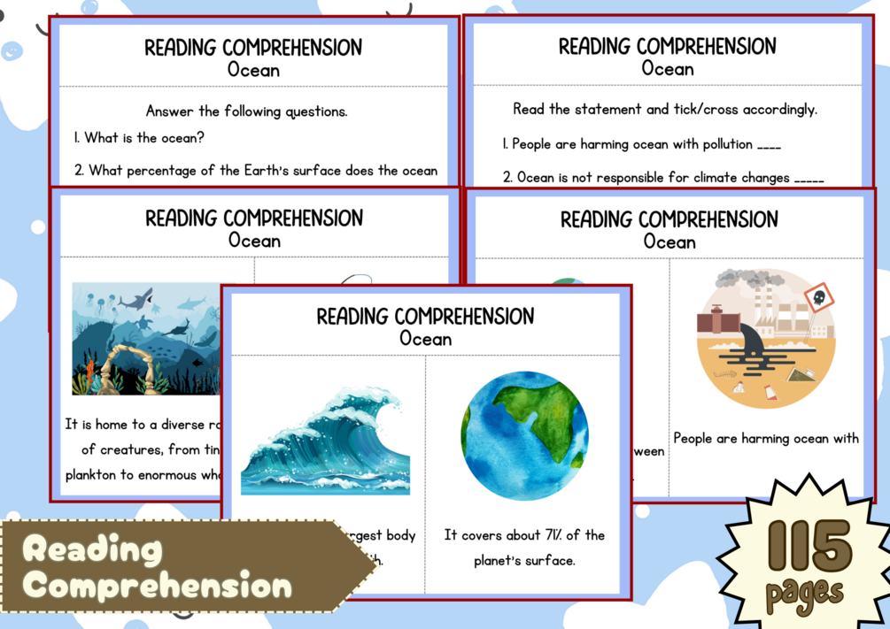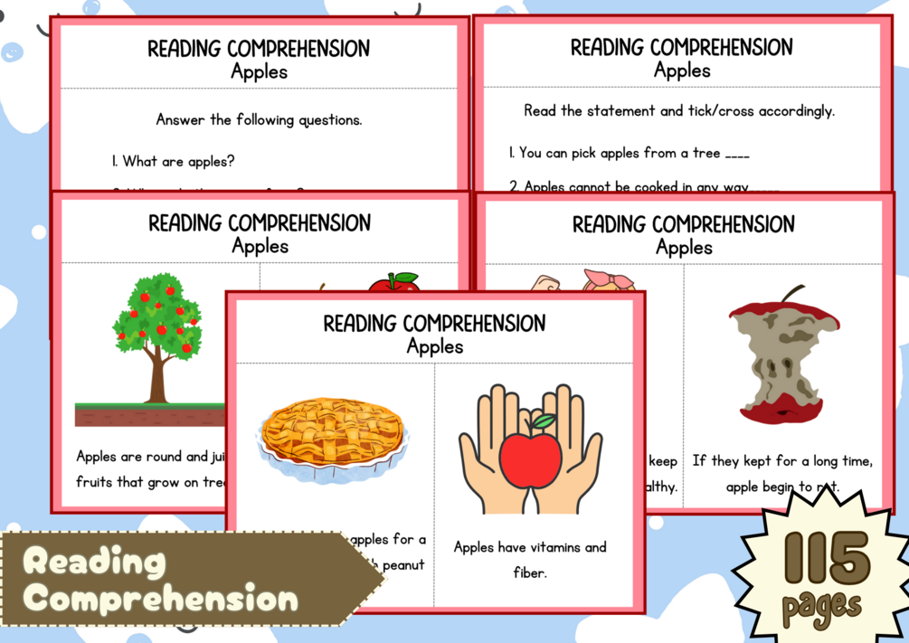 You'll get a soft copy of Printable Reading Comprehension with 115 pages